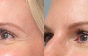 8 units of Botox on each side of the crow’s feet to reduce appearance of wrinkles and strategically placed for a subtle lifting effect of the tail end of the brow