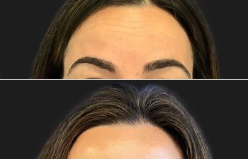 Forehead Botox Glabella Botox Crow's Feet Botox50 year-old female before and 2 weeks after Botox of the forehead, glabella, and crow's feet