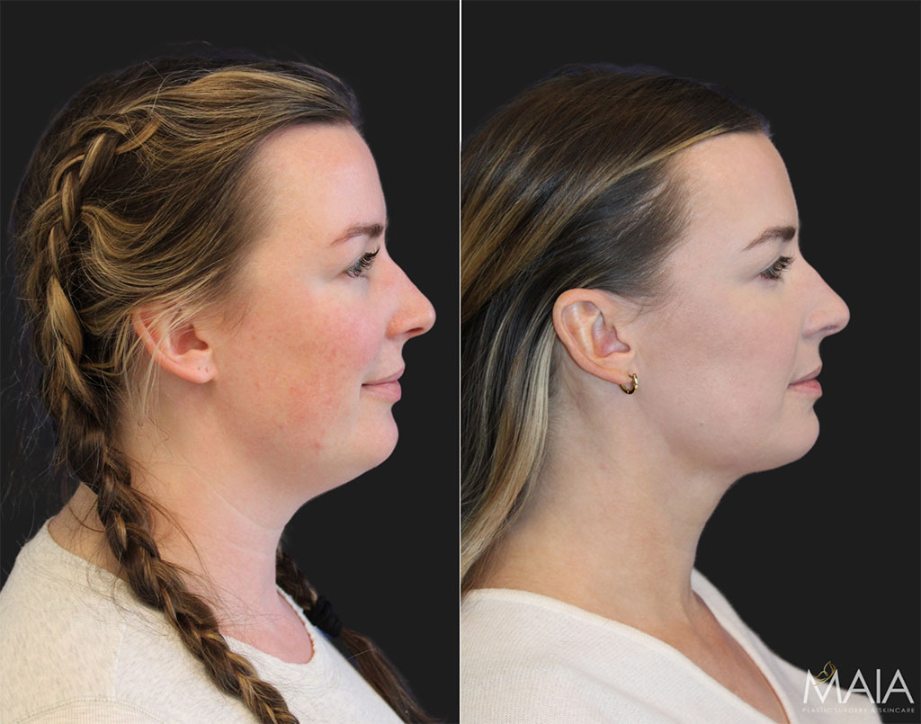 31 year-old bride-to-be before and 6 weeks after awake neck liposuction