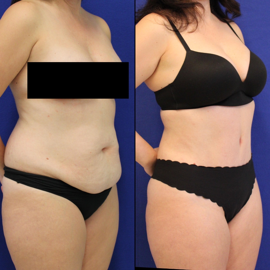 Abdominoplasty / Tummy Tuck Liposuction Breast Lift Diastasis Recti Repair Breast Implant Removal53 year-old patient before and after abdominoplasty and flanks liposuction