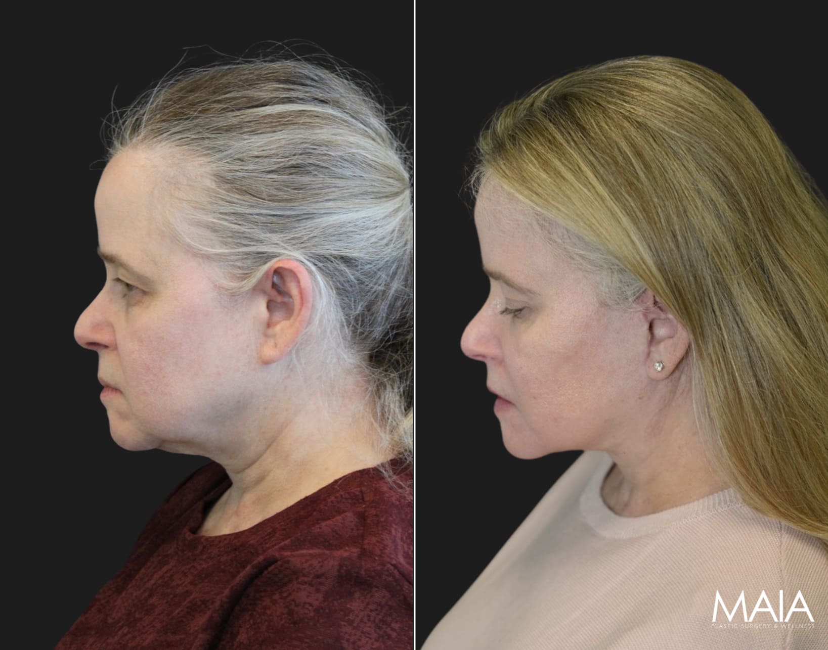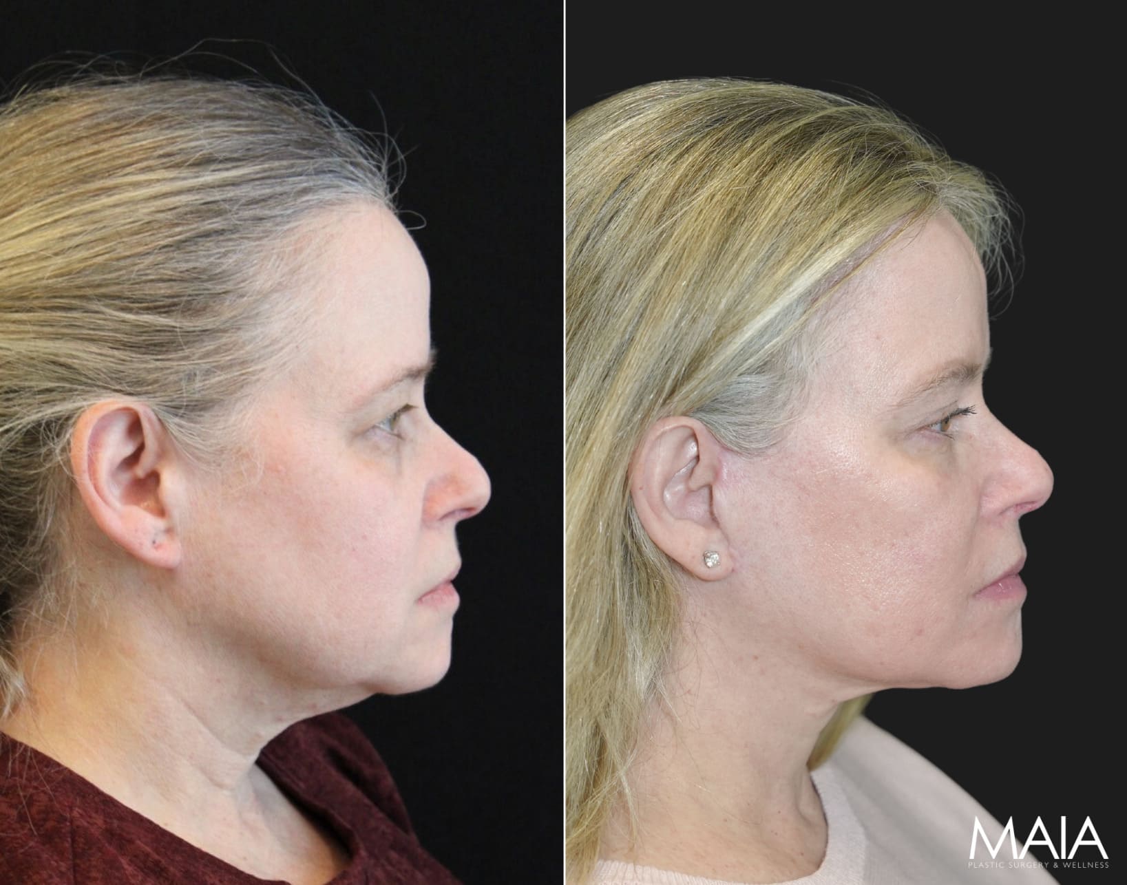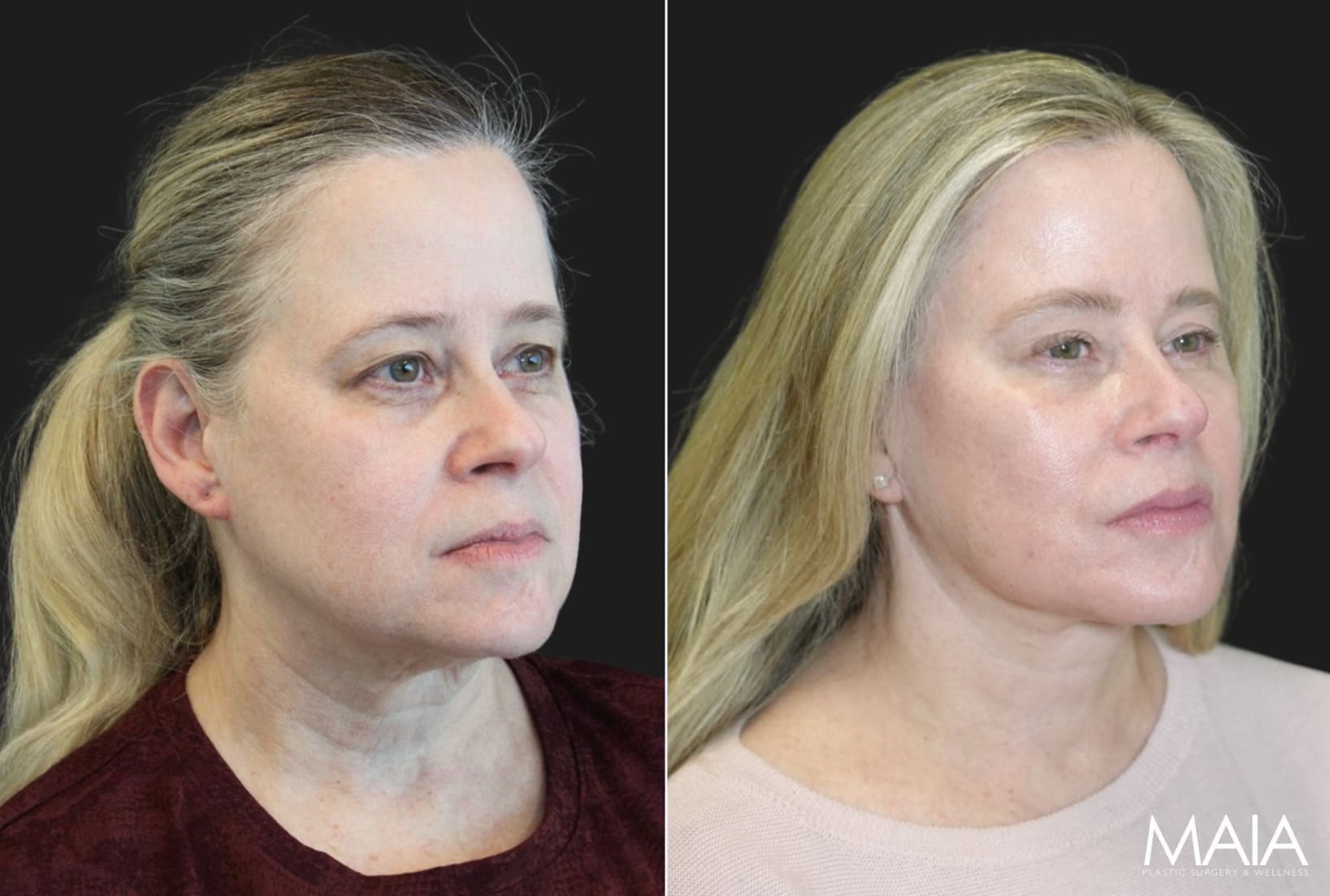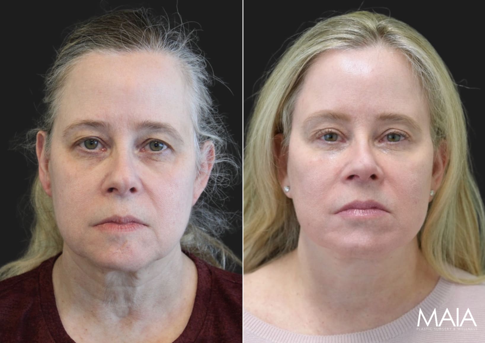 Facelift Surgery Neck Lift Eyelid Lift (Upper) Eyelid Lift (Lower) Forehead/Brow Lift55 year-old patient before and 1.5 months after facial rejuvenation surgery with Dr. Maia in Tysons Corner, Virginia