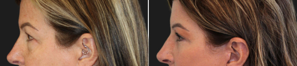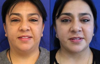 Facelift Surgery Neck Lift Forehead/Brow Lift Eyelid Lift (Lower) Eyelid Lift (Upper) Canthopexy CO2 – SmartSkin Fat Transfers45 year-old patient before and 4 months after under eye bag removal and nanofat under the eyes